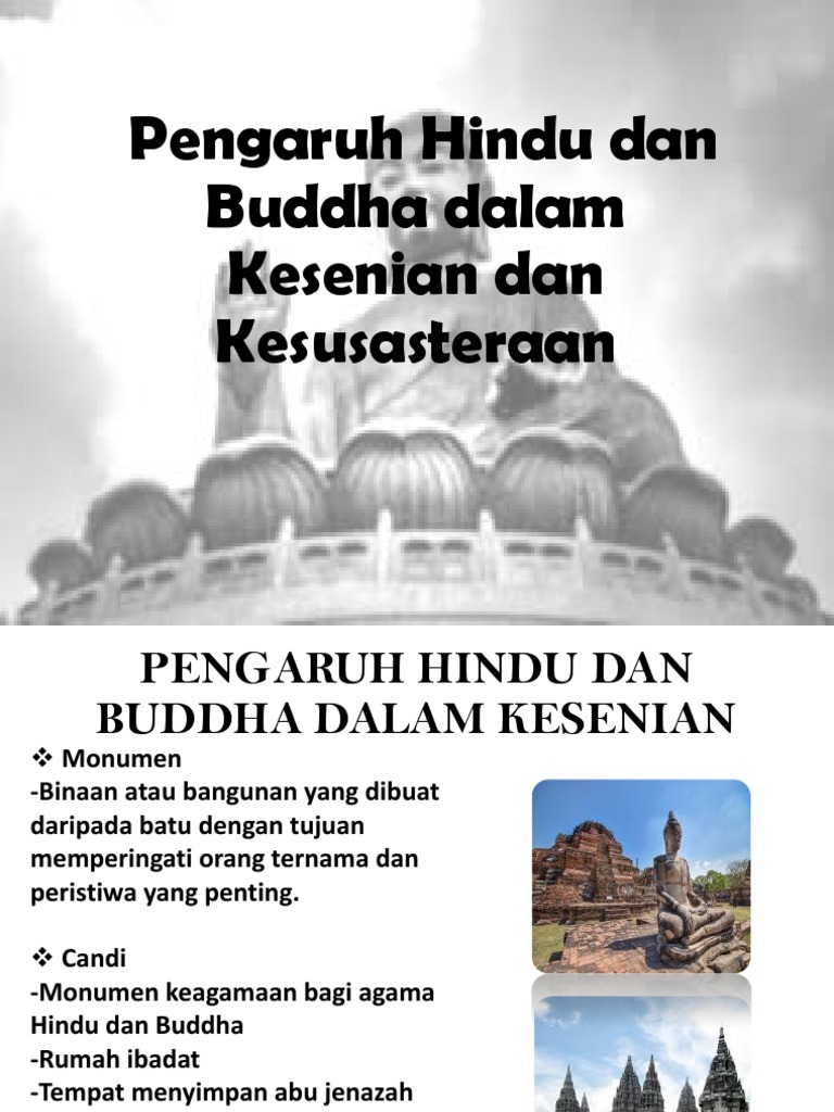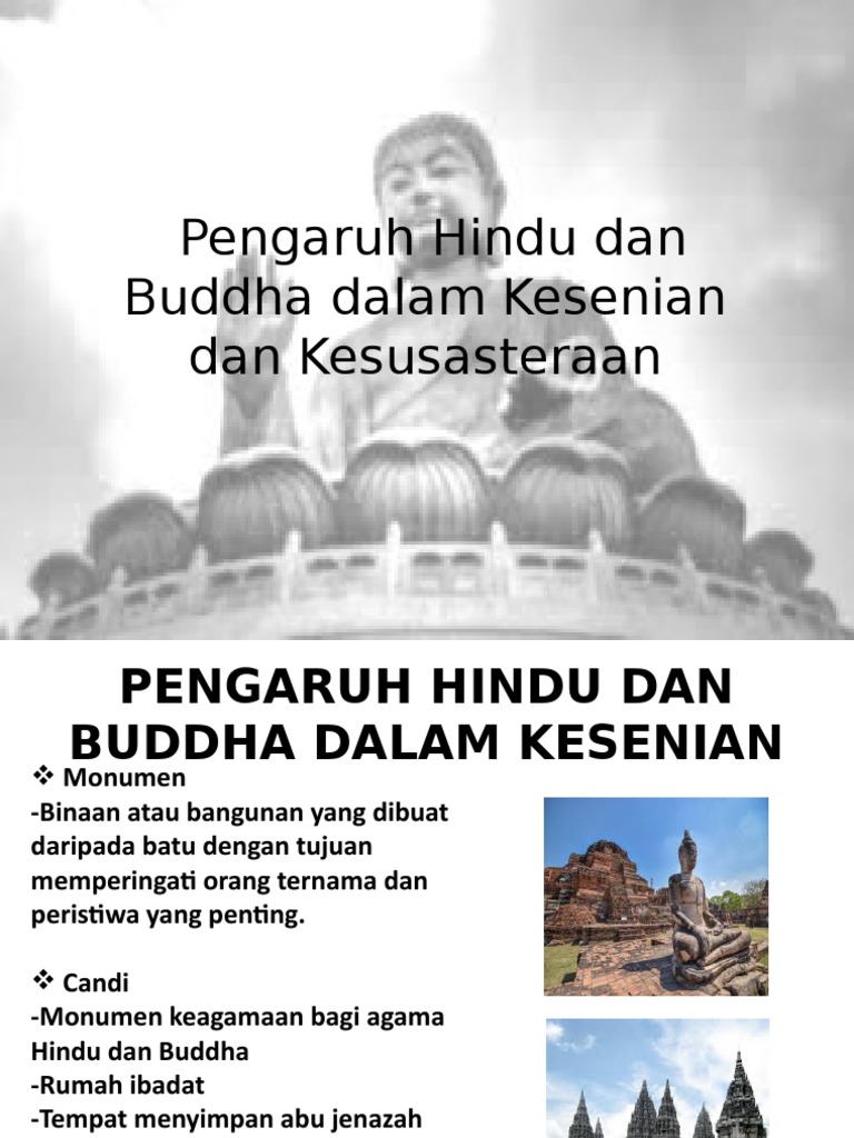 Pengaruh Hindu dan Buddha di Kehidupan Masa Kini Sejarah Kelas 11. Pendapat ini didasarkan pada penemuan Area Buddha di Sempaga Sulawesi Selatan abad ke-2 M. 2KEDATANGAN PENGARUH INDIA SEPERTI SISTEM KEPERCAYAAN BERAJA KESENIAN DAN KESUSASTERAAN.